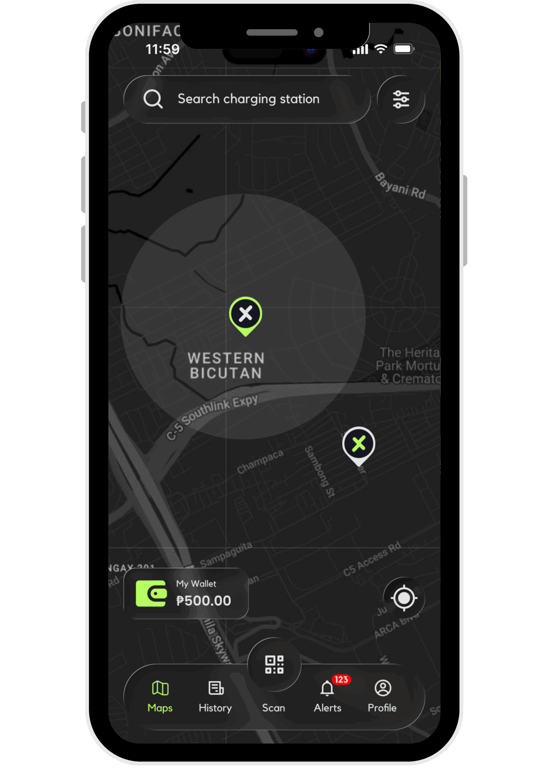 Use the interactive map to explore available chargers near you in real time. Filter by location or charger type.